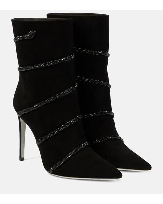 Damen Stiefeletten Aus Wildleder Mit Strasssteinen in schwarz