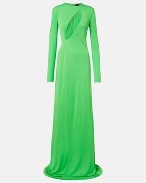 Der gefeierte, amerikanische Designer Tom Ford, bekannt dafür, dass er Gucci einst gerettet hat, gründete 2005 sein gleichnamiges Label und machte sich schnell einen Namen für seine Kollektionen, die Luxus neu definierten. Die Kleidung des Labels strahlt Fords einzigartige Vorstellung von Glamour aus und verbindet feine Eleganz mit einem sexy, weiblichen Flair. In dieser Auswahl an Kleidern zeigt sich das in schicken, figurbetonten Silhouetten, üppigen Details und feinsten Stoffen. Kleine Schwarze geschmückt mit Federfransen, Midi-Kleider mit durchscheinender Spitze und Cocktailkleider aus Leder und Samt. Alles ist durchzogen von Fords Verständnis moderner Weiblichkeit, Sex Appeal und Anspruch.