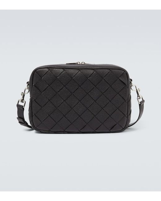 Herren Crossbody Bag Intrecciato Aus Leder in schwarz