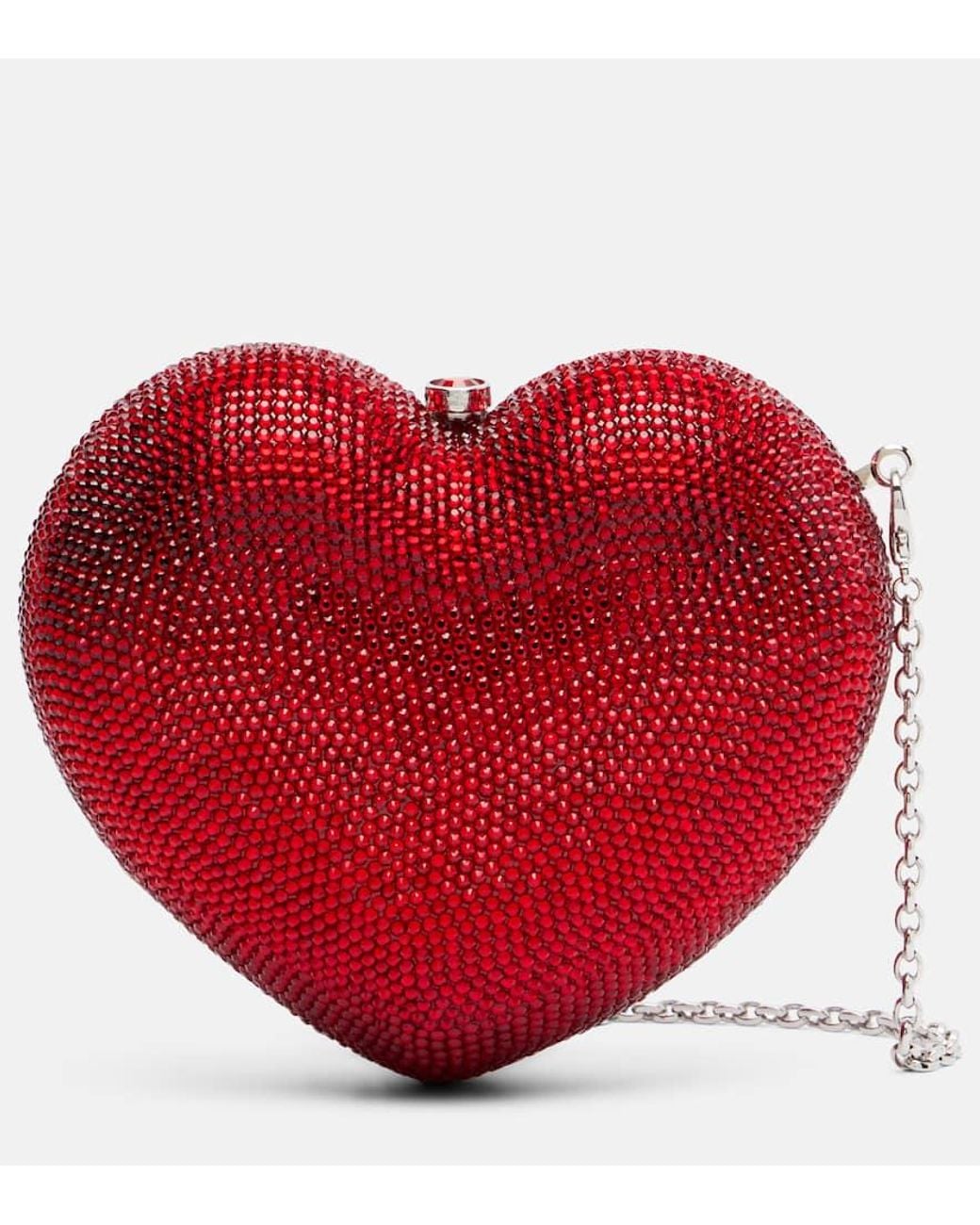 Petit Coeur Crystal-Embellished-Tone Clutch - Rot
