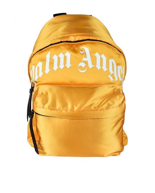 Gelbe Polyamid -Rucksackpalmengelgel. Weißes Logo vorne. Kleine vordere Tasche mit schwarzem Reißverschluss. Große Reißverschluss. Schwarze verstellbare Gurte. Schwarzer Riemen. Kleine Größe: 28,5 x 42 x 19 cm. In Italien gemacht.
