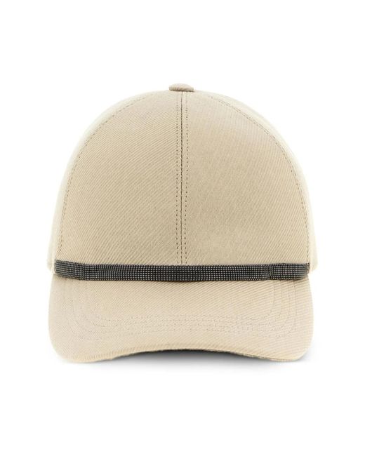 Shoppe im Sale: Brunello Cucinelli Hut mit einer beigen Verzierung und einem verstellbaren Riemen mit Schnallenverschluss. Eine elegante Kappe für bequemes Tragen im Alltag. Hauptmerkmale: Beige | Verstellbarer Riemen | Schnallenverschluss | Kappen-Silhouette | Beige Verzierung | Abmessungen & Passform: Verstellbare Passform Farbe: natur