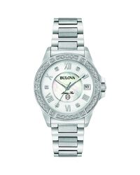 Weiter zu Dress-for-LessDiese Bulova Marine Star Analog Uhr für Damen ist das perfekte Accessoire zum tragen oder verschenken. Ihr Silber 35 mm Rund Gehäuse kombiniert mit dem bequemen Silber Armband aus Edelstahl garantiert, dass Sie