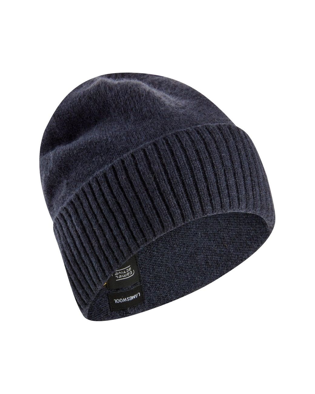 Design: Rippbündchen, Rippstrick; Material: Wolle; Muster: Unifarben; Mützenart: Beanie; Extras: Ton-in-Ton-Nähte Farbe: blau