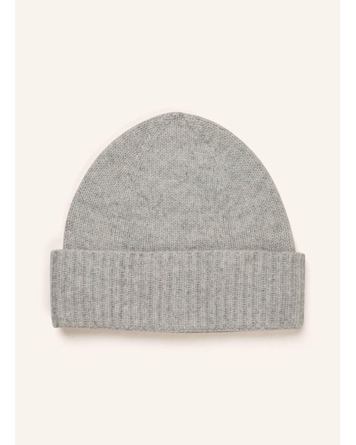 Beanie. Rippstrick. Mit Umschlag. Reines Cashmere. Farbe: grau