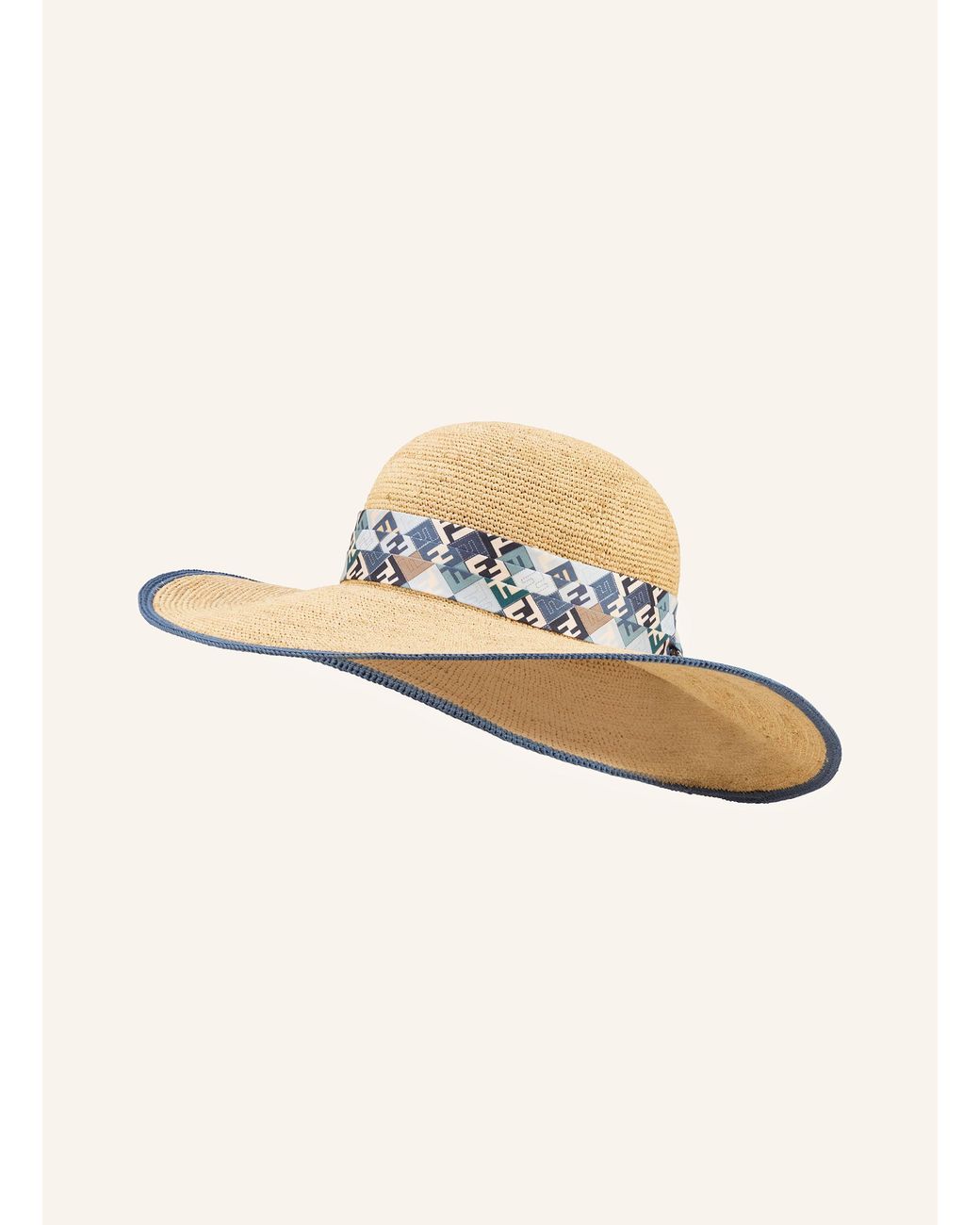Schlapphut. Hutband aus Seide. Mit Monogramm-Muster. Krempe mit Häkeldetail. Futterband. Leder-Badge. Handmade. Farbe: natur