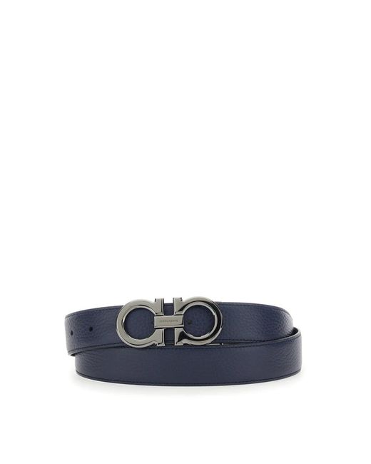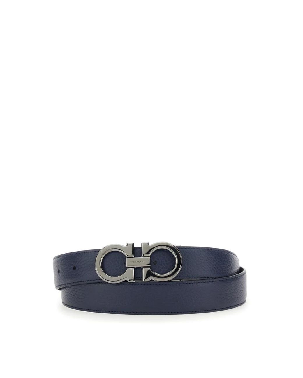 Der Salvatore Ferragamo New Gancio Gürtel kombiniert die charakteristische Gancio-Schnalle des Labels mit einem wendbaren Lederriemen für vielseitiges Alltagsstyling. Hauptmerkmale: Blau | Blu | Kalbsleder | Wendbares Design | Verstellbare Länge | Kann auf Größe zugeschnitten werden | Gancio-Schnalle | Narbenleder-Finish | Genähter Lederriemen | Abmessungen & Passform: Verstellbare Passform | Längen können gekürzt oder zusätzliche Löcher für eine individuelle Passform gestanzt werden | Zusammensetzung & Pflege: Kalbsleder | Professionelle Reinigung empfohlen. Farbe: blau