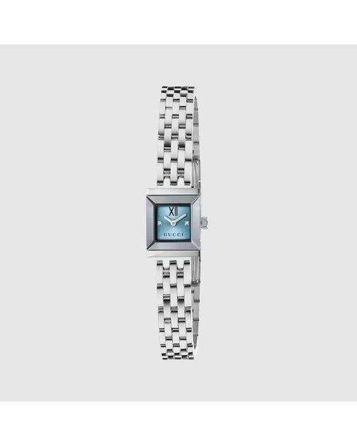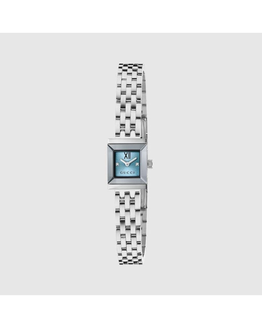 Generation Gucci taucht in die Archivcodes der Marke ein und kombiniert verschiedene Designgenerationen zu einer ästhetischen Erzählung. G-Frame präsentiert ein schlankes quadratisches Gehäuse, verziert mit einem farbenfrohen Zifferblatt, für einen Hauch von raffinierter Einfachheit. 14x18 mm Edelstahlgehäuse, Hellblaues Zifferblatt, Entspiegeltes Saphirglas, Rostfreier Stahl Armband, Garantiezertifikate für Gucci Uhren, die nach dem 1. März 2022 erworben wurden, sind ausschließlich online erhäl Farbe: blau