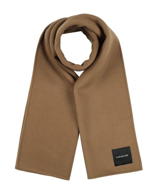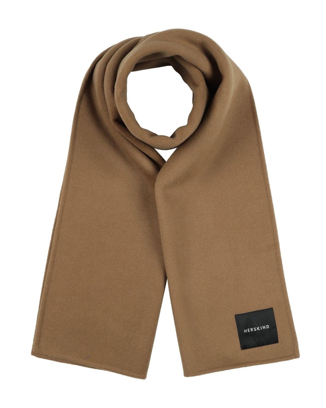 HERSKIND. Schal, Wollstoff, einfarbig, Brand Logo, Chemische Reinigung, nicht Bleichen, Trockner ungeeignet. 90% Wolle, 10% Kaschmir. Farbe: braun