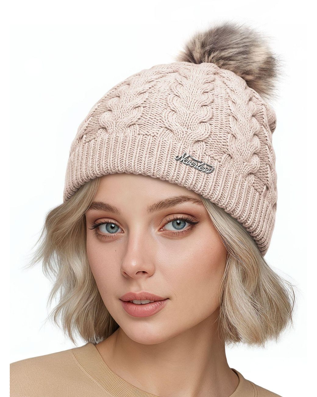 Muster: Unifarben; Mützenart: Bommelmütze Farbe: natur
