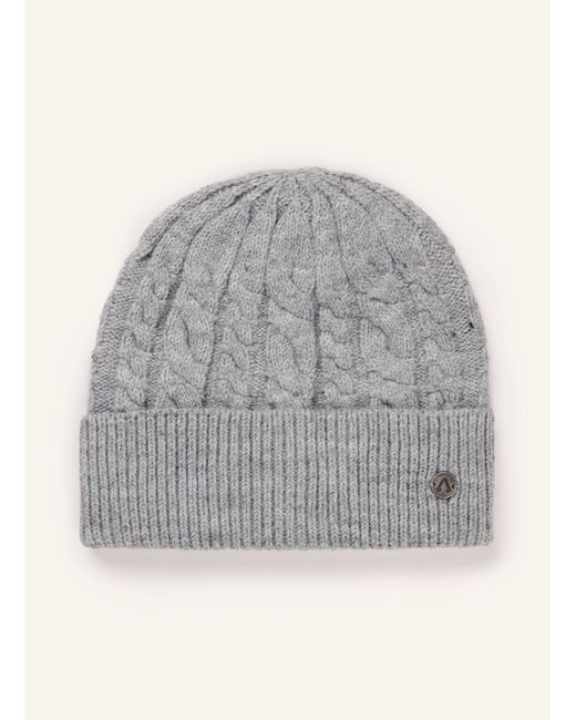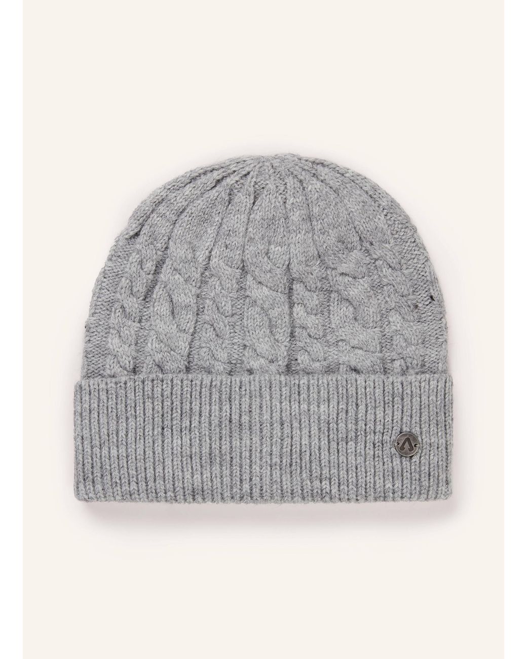Beanie. Zopfstrick. Mit Umschlag. Label-Details. Farbe: grau