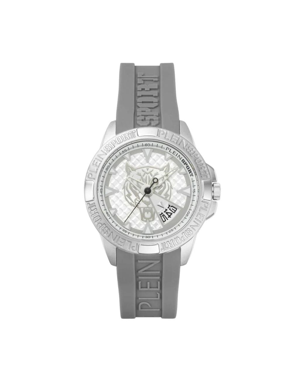 Shoppe im Sale: Die Plein Sport Touchdown Watch ist eine 44-mm-Analog-Quarzuhr, die ein Edelstahlgehäuse mit einem mineralglasgeschützten Zifferblatt für einen sportlichen Alltagslook kombiniert. Hauptmerkmale: Grau | Silber | Edelstahl | Wasserdichtigkeit: 5 Bar | Quarzwerk | Datumsanzeige | Verstellbares Silikonarmband | Rundes Gehäuse | Guilloche-Zifferblattstruktur | Mineralglasgeschütztes Zifferblatt | Abmessungen und Passform: Gehäusegröße: 44 mm | Zusammensetzung und Pflege: Edelstahl | Silikon/Gummi | Mineralglas Farbe: mettallic