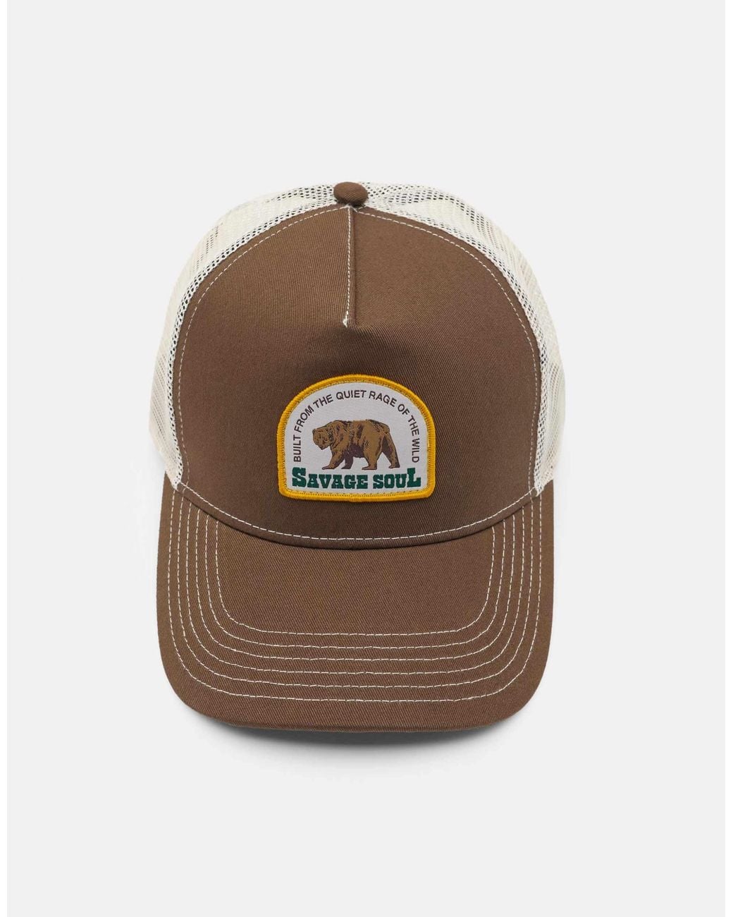 Accessoires von Pull&Bear Krone im Bahnendesign Netzeinsätze hinten gesticktes Emblem abgerundeter Schirm verstellbarer Clipverschluss. Farbe: braun