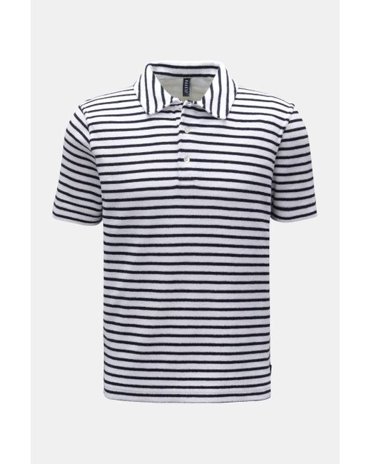 Mit softem Frottee und klassischen Streifen entsteht die sommerliche Kombination, die das Poloshirt 'Terry Stripe Polo' aus reiner Baumwolle von 04651/ A TRIP IN A BAG ausmacht. Frottee aus reiner Baumwolle weicher Griff zeitlose Streifen Slim Fit konfektionierter Polokragen Drei-Knopf-Leiste kleines Weblabel in der Seitennaht kurze Saumschlitze - bei BRAUN Hamburg Farbe: blau