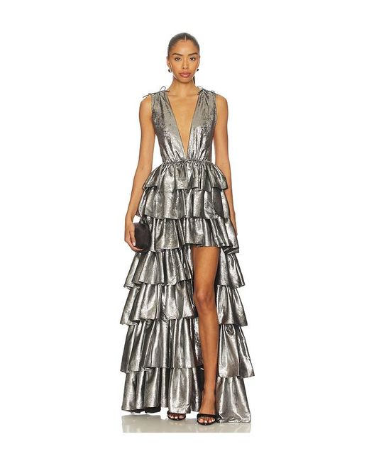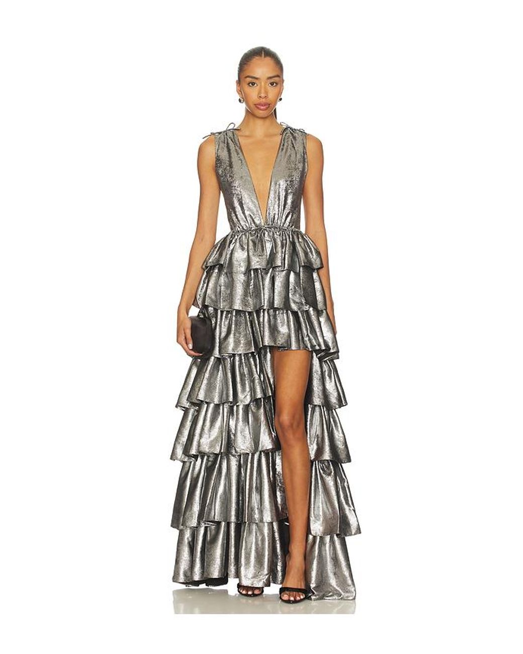 AKNVAS KLEID HENRIETTE in Metallic Silver. Größe 12. Also in 4. AKNVAS KLEID HENRIETTE in Metallic Silver. Size 4. 100% Polyester. Hergestellt in China. Chemische Reinigung. Durchgehend gefüttert. Reißverschluss hinten. Tiefer V-Ausschnitt vorne und hinten mit Tanktop-Schultern. Volantrock. AKNR-WD60. R26-1229B-GUN. Farbe: weiß