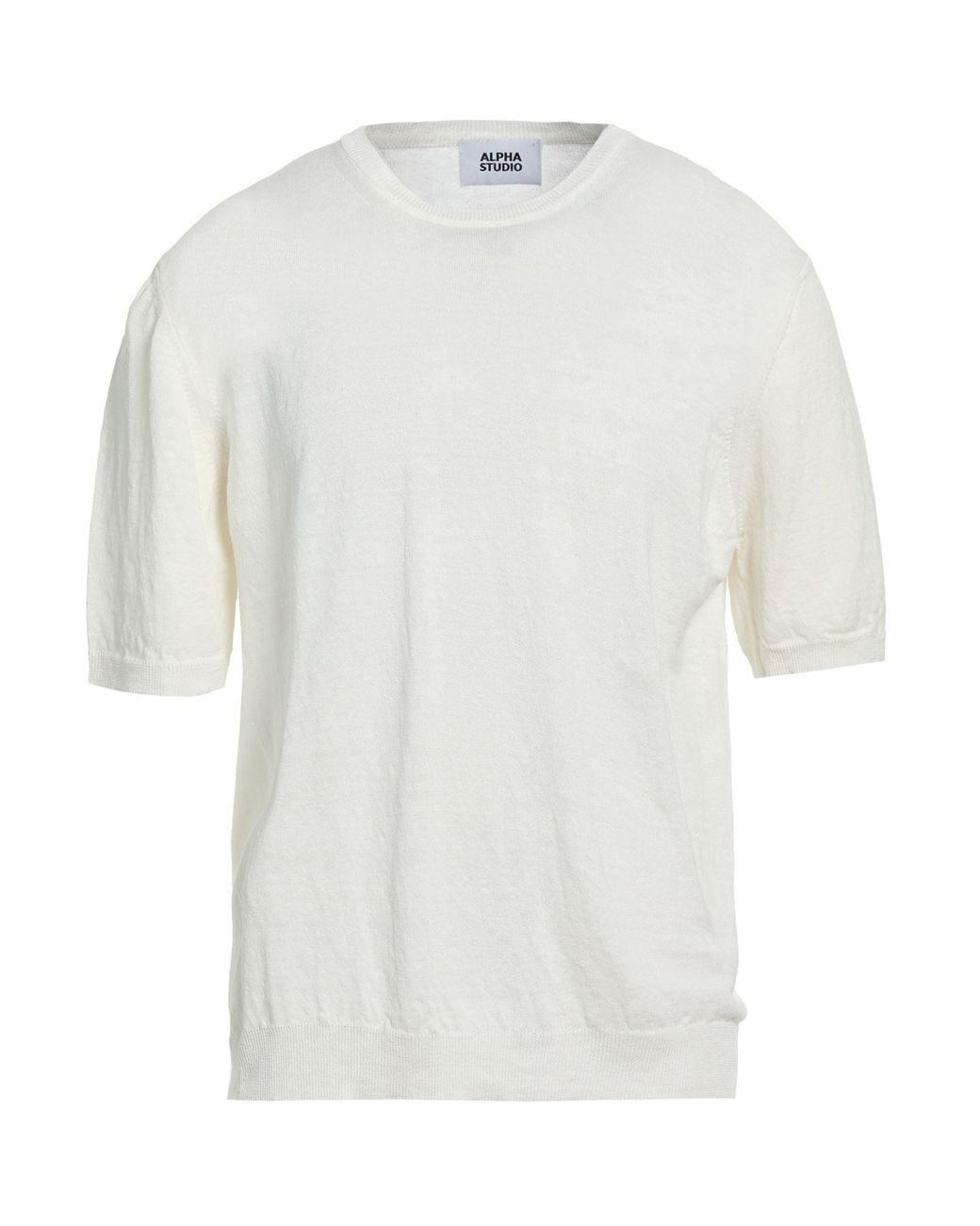 ALPHA STUDIO. Wolle, Leichter Strick, ohne Applikationen, einfarbig, Rundhalsausschnitt, kurze Ärmel, Handwäsche, Trockner ungeeignet. 100% Hanf. Farbe: weiß