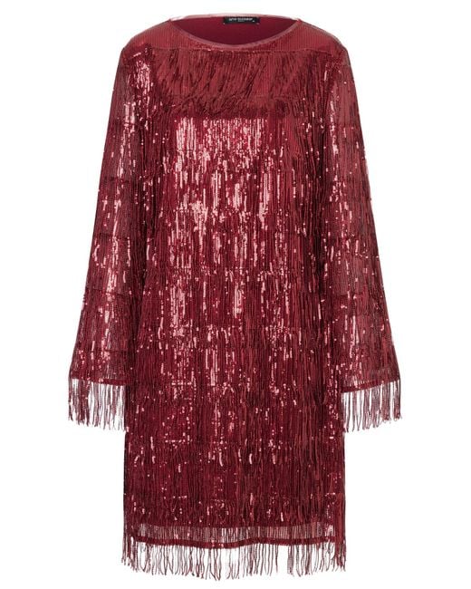 Design: Trompetenärmel; Ausschnitt: U-Boot-Ausschnitt; Muster: Unifarben; Details: Fransen; Extras: Glänzend; Länge: Kurz/Mini; Passform: Lockere Passform; Ärmellänge: Langarm Farbe: rot