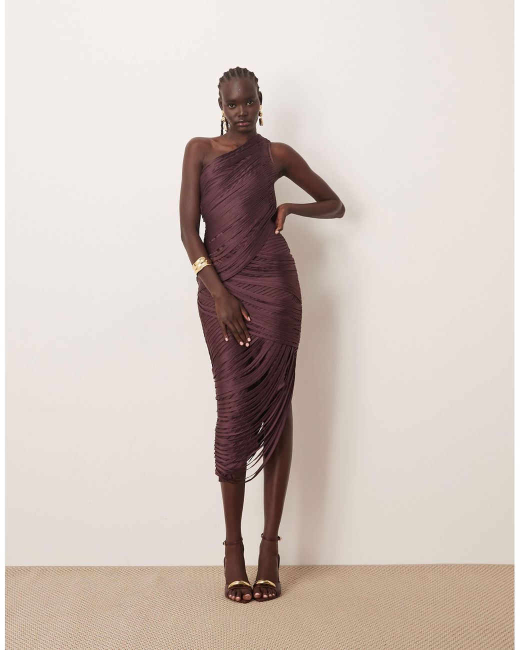 Kleider von ARRANGE Fransendesign One-Shoulder-Design Drapierung Seitlicher Reißverschluss asymmetrischer Saum Schmale Passform. Farbe: pink