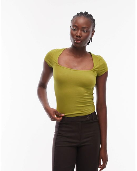 Oberteile von ASOS DESIGN Schlichtes Design Eckiger Ausschnitt Flügelärmel Schmale Passform. Farbe: grün