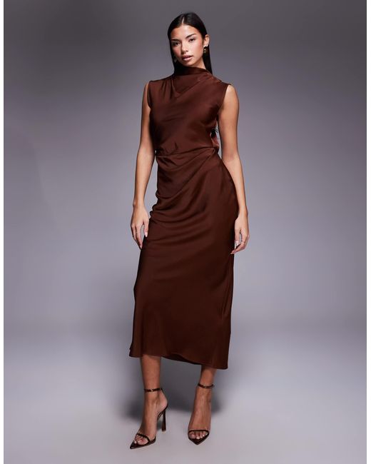 Kleid von ASOS DESIGN Hochgeschlossen ärmelloses Design Zierfalten Rückenausschnitt mit Knopfverschluss und Reißverschluss hinten Normale Passform. Farbe: braun
