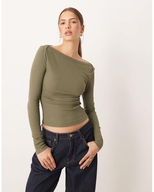 Oberteile von ASOS DESIGN U-Boot-Ausschnitt Langärmlig Schmale Passform. Farbe: grün