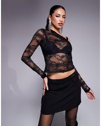 ASOS Damen – langärmliges oberteil aus spitze in schwarz