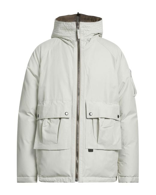 BELSTAFF. Lange Daunenjacke, Tuch, beidseitig tragbar, Brand Logo, einfarbig, Kapuzenkragen, lange Ärmel, mit Entenfedern gefüttert, Schwere Füllung, Reißverschluss, Pattentaschen, Reißverschlusstasche, Enthält nichttextile Teile tierischen Ursprungs., Chemische Reinigung, nicht Bleichen, Trockner ungeeignet. 61% Baumwolle, 38% Polyamid, 1% Polyurethan. Farbe: grau