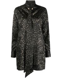 Weiter zu FashionetteDas Acorus Mini-Kleid mit Leopardenmuster von Blanca Vita präsentiert ein stilvolles Design mit einem Kordelkragen und langen Ärmeln. Das durchgängige Leopardenmuster in kontrastierenden Farbtönen verstärkt die elegante Anziehungskraft, ergänzt durch einen abgerundeten Saum