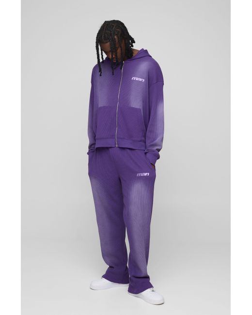 Herren Kastiger Oversize Man Trainingsanzug in Waffeloptik mit Kapuze und Reißverschluss in lila
