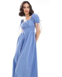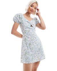 Weiter zu ASOSKleider von Brave Soul Florales Muster Herzausschnitt Puffärmel Zierausschnitt Schnürverschluss auf der Rückseite Normale Passform. Farbe: weiß