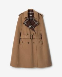 Weiter zu Julian FashionZweireihiger Umhang "Belmont" aus Burberry Karo-Twill mit kontrastfarbenem Burberry Karofutter und Revers, Knopfverschluss vorne, Reverskragen mit Kinnriemen und Hakenverschluss, Taschen, Armöffnung, abnehmbarer Gürtel. Composizione: 100 % Wolle. Size&Fit: Passgenau. Farbe: braun