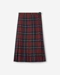 Burberry Damen Plaid Wool Blend Midi Dress in rot