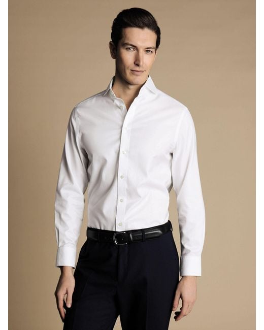Herren Extrem Cutaway Slim-Fit-Hemd Aus Bügelfreiem Twill, 100 Baumwolle in weiß