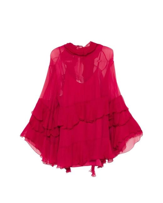 Pink Rüschenkragen gestufte Rüschen lange Ärmel gefüttert Size: 36. Gender: Female. Material:Seide.