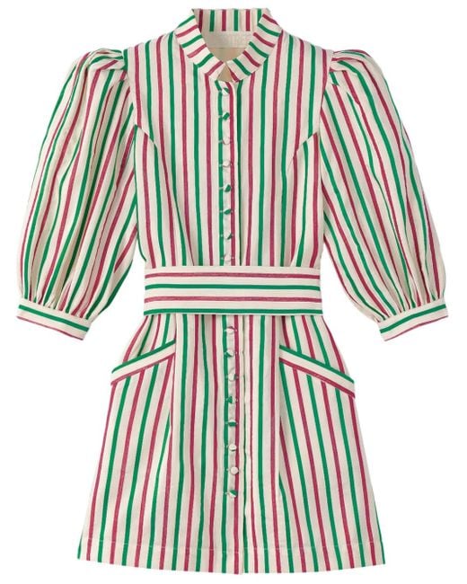 Mehrfarbig aufgedruckte Längsstreifen ohne Kragen Knopfverschluss vorne schmale Taille zwei Eingrifftaschen an der Seite Cropped-Ärmel gerader Saum oberschenkellang Size: S. Gender: Female. Material:Polyester/Baumwolle. Farbe: weiß