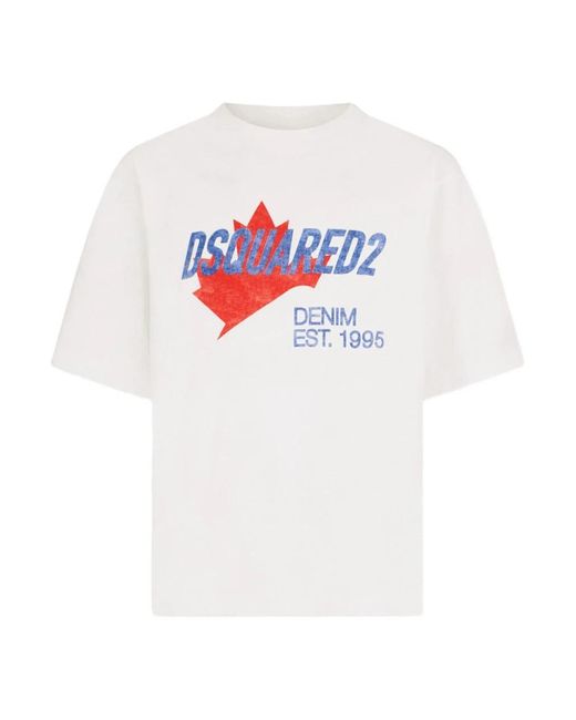 Dsquared2 Grafik-T-Shirt mit Rundhalsausschnitt und kurzen Ärmeln, entworfen als lässiges Alltags-T-Shirt mit einem Statement-Print. Hauptmerkmale: Weiß | Baumwolle | Rundhalsausschnitt | Kurze Ärmel | Grafikdruck | Logo-Print auf der Brust | Gerader Saum | Zusammensetzung & Pflege: 100% Baumwolle | Maschinenwäsche kalt. Farbe: weiß