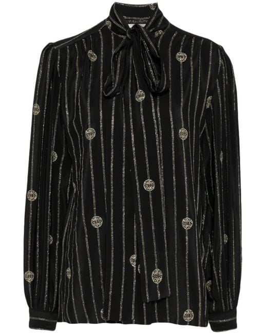 Damen Hemd Mit Metallic-Nadelstreifen in schwarz