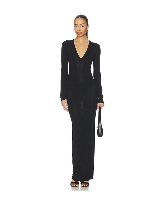 Entire Studios KLEID V NECK MIDI in Black. Größe L. Also in XS, S, M. Entire Studios KLEID V NECK MIDI in Black. Size XS, S, M. 100% Viskose. Hergestellt in China. Maschinenwäsche. Ungefüttert. Schlupfform. Lightweight stretch knit textile. Deep-V neckline with ribbed trims and tapered waist. ENTR-WD3. ESSS26DR01290. Farbe: schwarz