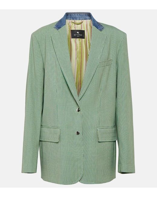 Bedruckter Poncho Aus Einem Wollgemisch - Grün