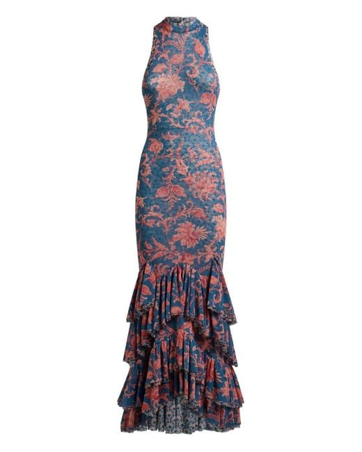 Damen Gerüschtes Kleid mit Blumen-Print in blau