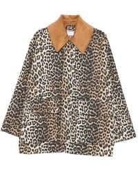 Weiter zu BalardiBomberjacke mit Leoparden-Druck-Baumwollmischung, ausgekleideter Innenraum, Reißverschluss, Taschen, lange Ärmel mit elastischen Manschetten, einstellbarer Kordeladring am Saum. Nachhaltig: Dieses Produkt besteht aus organischer Baumwolle. Ganni. Leopard -Bomberjacke. Bergroße Passform. Farbe: braun