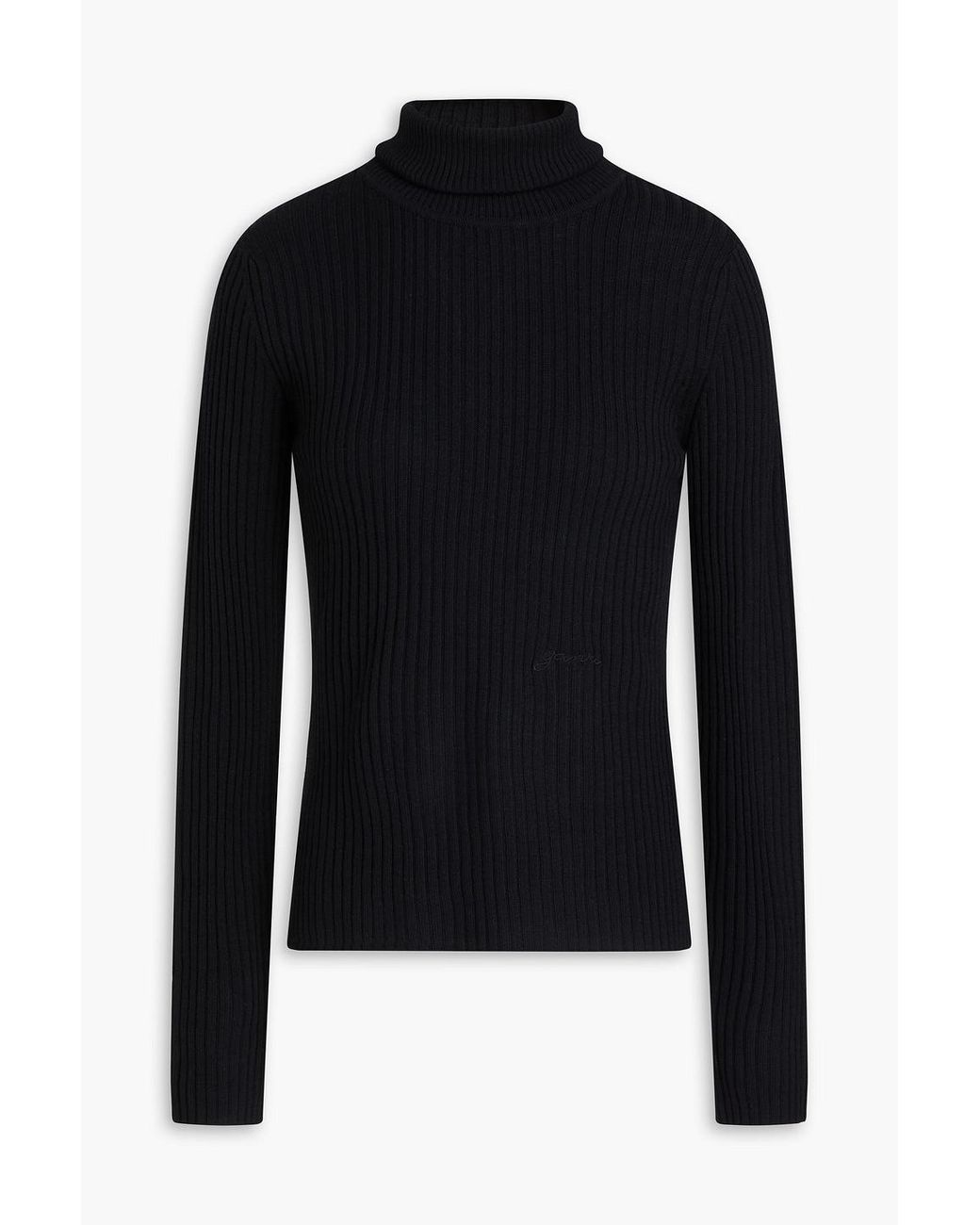 Damen Rollkragenoberteil aus gerippter merinowolle in blau