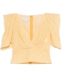 Weiter zu FARFETCHBeige Spitzenmuster kurze Ärmel V-Ausschnitt Perlenverzierung Cropped-Design Size: 38. Gender: Female. Material:Polyester. Farbe: weiß