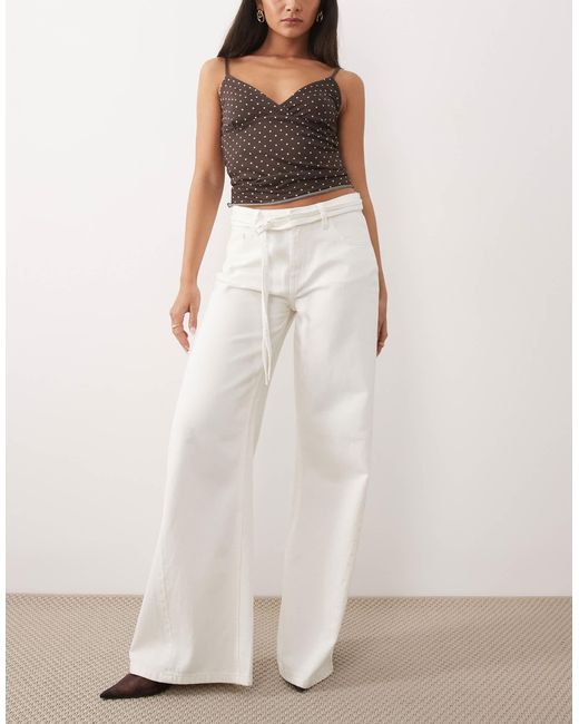Jeans von Gina Tricot Weit geschnitten Normale Bundhöhe Gürtelschlaufen Taillenschnürung Fünf Taschen. Farbe: weiß