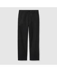 Weiter zu GucciIn der Pre-Fall 2025 Kollektion treffen vielfältige Strukturen auf raffinierte Details. Diese Hose aus schwarzem Canvas aus Baumwolle und Viskose ziert ein Schlaufendetail mit Web. , Schwarzer Canvas aus Baumwolle und Viskose, Schlaufendetail