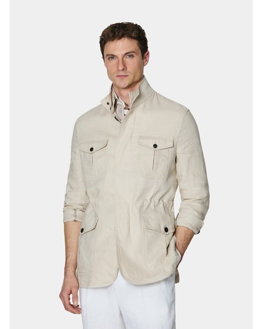 Unsere Field Jacket oder Safarijacke ist das perfekte Kleidungsstück, das über einem Hemd getragen wird und für einen zeitlosen Look sorgt. Sie besteht aus reinem Leinen und verfügt über vier Falttaschen mit Patte und Knopf, einen Frontverschluss mit Doppelreißverschluss und verdeckten Knöpfen sowie geknöpfte Manschetten. Der innenliegende Kordelzug sorgt für eine moderne, figurbetonte Passform. Farbe: natur