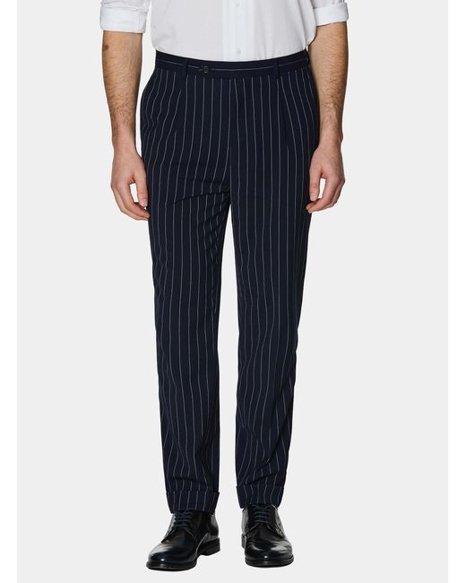 Herren Zweireihige Anzughose Mit Nadelstreifen in blau