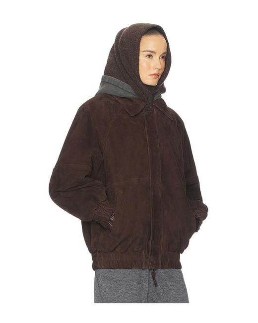 Helsa BLOUSONS THE OVERSIZED SUEDE in Brown. Größe L. Also in XS, XXS, S, M, XL. Helsa BLOUSONS THE OVERSIZED SUEDE in Brown. Size XS, XXS, S, M, XL. Hauptmaterial:100% LeatherFutter:100% Polyester. Hergestellt in Indien. Professional leather cleaner only. Zip up and snap button closure. Seitennahttaschen. Raffungen an Saum und Bündchen. HLSA-WO97. HEOW10051 H25. Farbe: braun