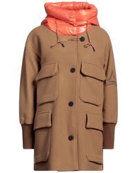 Weiter zu YOOXWollstoff, Hightech-Gewebe, Brand Logo, Multicolor-Print, Kapuzenkragen, Einreiher, lange Ärmel, innen gefüttert, Druckknöpfe, viele Taschen, Einreiher. 80% Schurwolle, 20% Polyamid. Farbe: braun