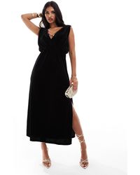 Weiter zu ASOSKleider von Jarlo Das Teil, das zu allem passt Hochgeschlossen drapiertes Faltendesign Flügelärmel eng anliegende Taille unten ausgestellt Reißverschluss hinten Seitlicher Schlitz. Farbe: schwarz